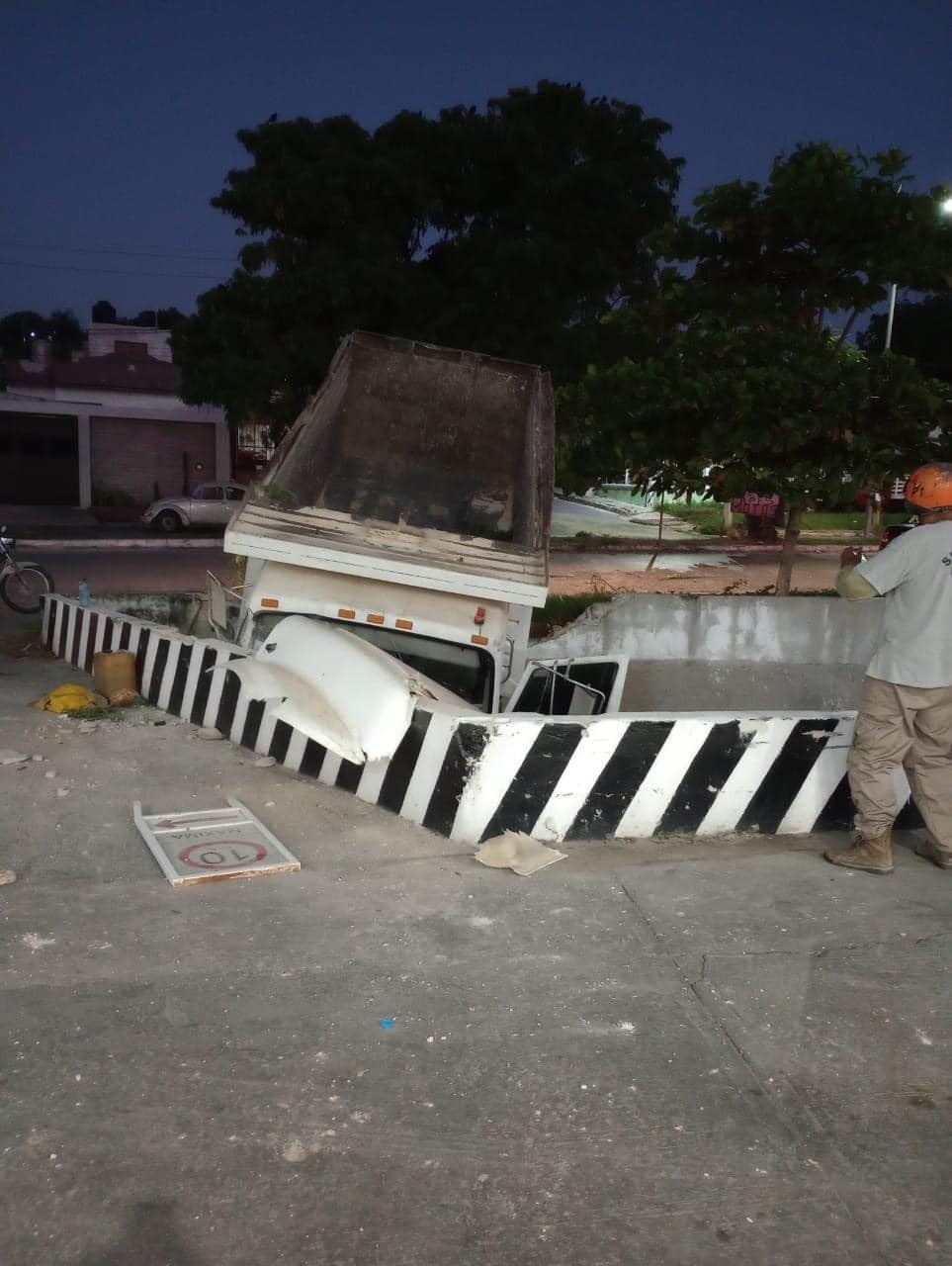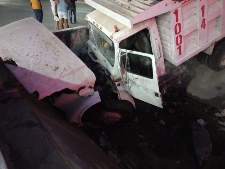 En redes sociales empiezan a circular las fotografías de un percance vial suscitado en el cruce de las avenidas Benito Juárez y CTM, donde al parecer un volquete se quedo sin frenos cuando bajaba el cerro de Cumbres.