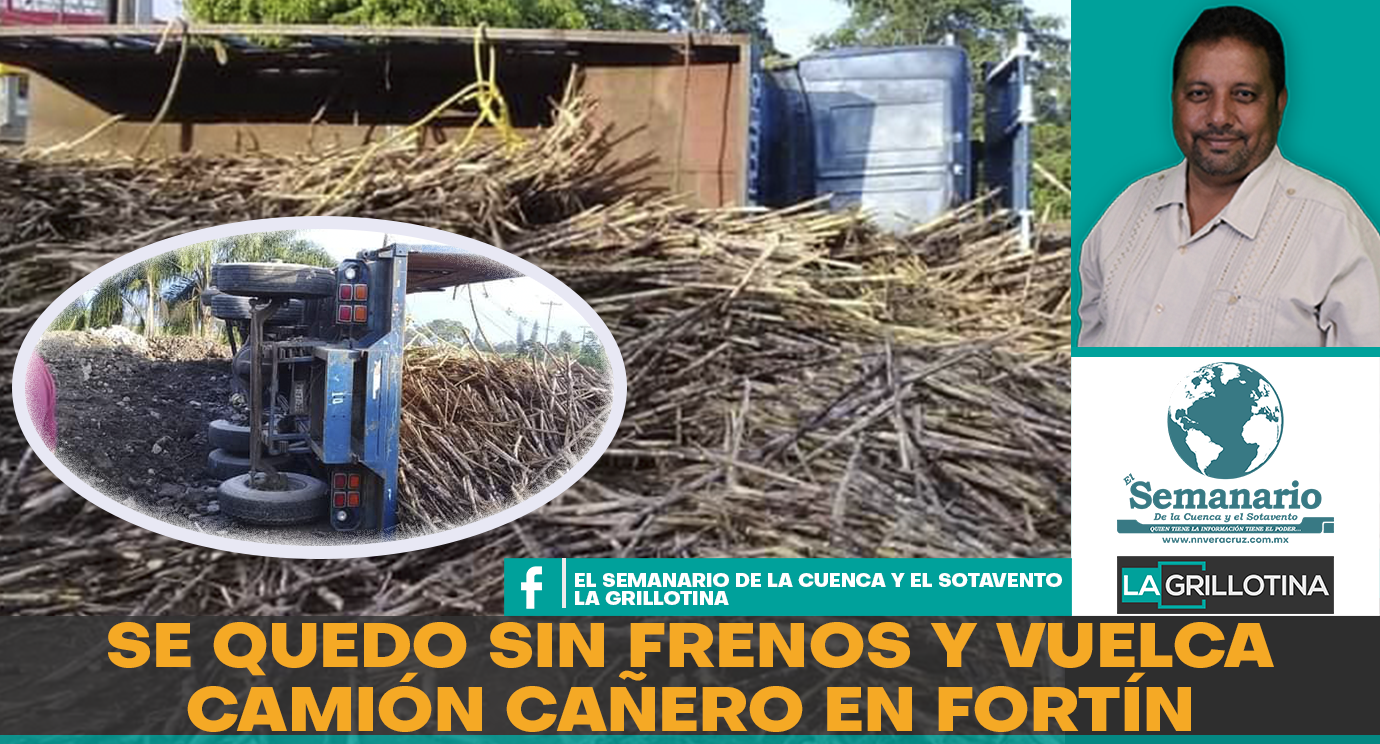 Una falla en el sistema de frenos fue la causa de una volcadura de un camión cañero registrada la tarde de este domingo en Fortín sobre la carretera federal Fortín-Huatusco a la altura del recinto ferial.