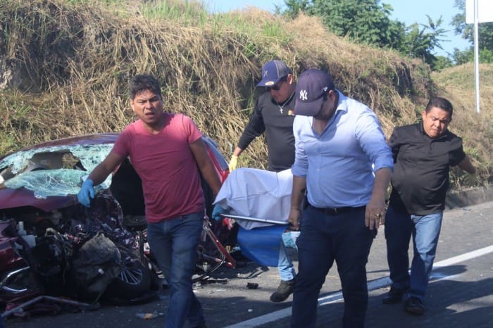 Elementos de la Policía Ministerial y la Dirección de Servicios Periciales realizaron las diligencias correspondientes para liberar los cuerpos con ayuda de equipo hidráulico y posteriormente retirarlos al SEMEFO.