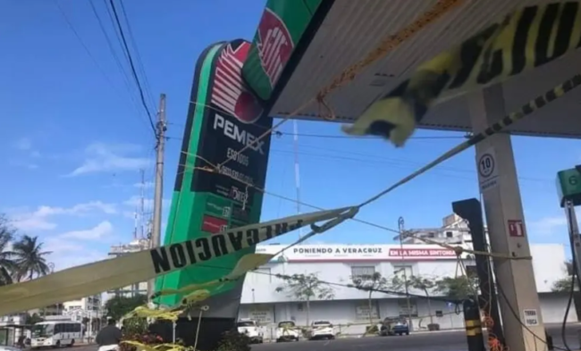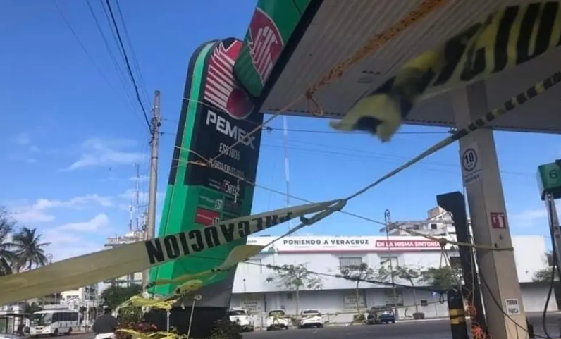El norte con rachas superiores a 100 kilómetros por hora dañó el anuncio luminoso de una gasolinera en el centro de Veracruz.