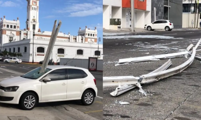 Detalla que “en la calle Arista, el viento desprendió ventanales y piezas de metal en varios puntos de la estructura de la Torre Centro, cayendo sobre la calle y dañando un vehículo”.