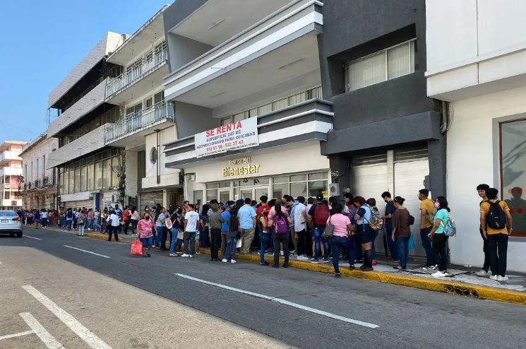 Este miércoles se observaron largas filas al exterior de la sucursal del Banco de Bienestar ubicada en la avenida Independencia en el centro de la Ciudad.