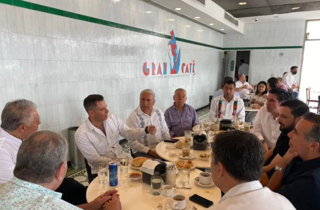 El exgobernate se reunió en un café en Boca del Río con empresarios, entre ellos José Manuel Urreta Ortega, presidente nacional de la Asociación Nacional de Consejos Empresariales Regionales (ANCER).