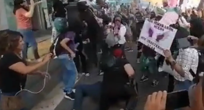 Una de las feministas sometió al joven y lo lanzó al piso en donde fue golpeado y pateado en todo el cuerpo, hasta que logró huir.
