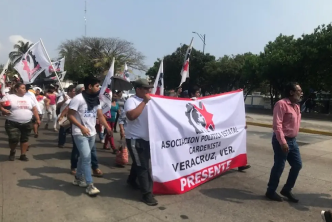 Decenas de personas que pertenecen a la Asociación Política Estatal Cardenista en este municipio de Veracruz, caminaron y protestaron en contra de la Comisión Federal de Electricidad (CFE) para exigir no haya más apagones en la zona conurbada.