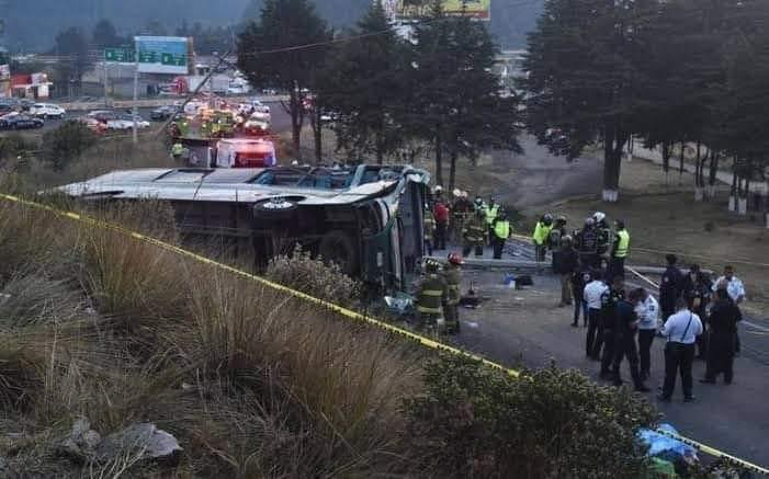 Datos preliminares, los peregrinos viajaban abordo del autobús con dirección al Santuario de Chalma como parte de las actividades de Semana Santa, lamentablemente el chofer perdió el control y volcó de una manera aparatosa.