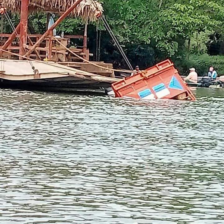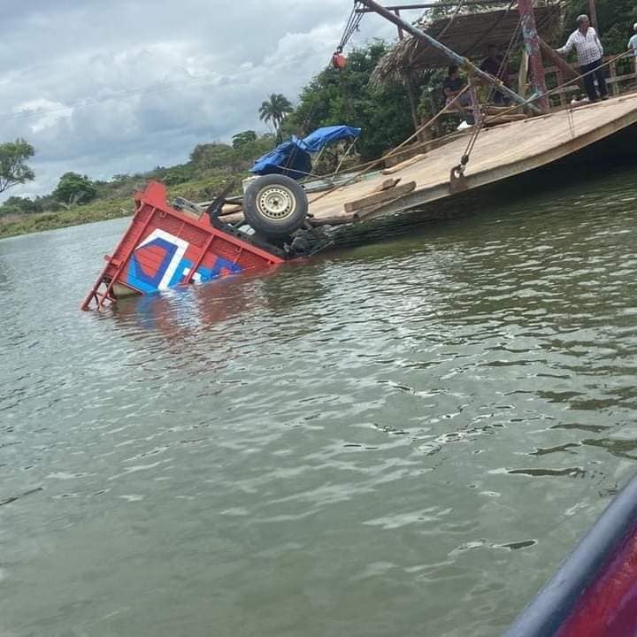 Minatitlán, Ver.- Está mañana una camioneta tipo redilas cayó de la panga hacia el río Uxpanapa esto en la localidad de Filisola para cruzar a la localidad de la concepción.