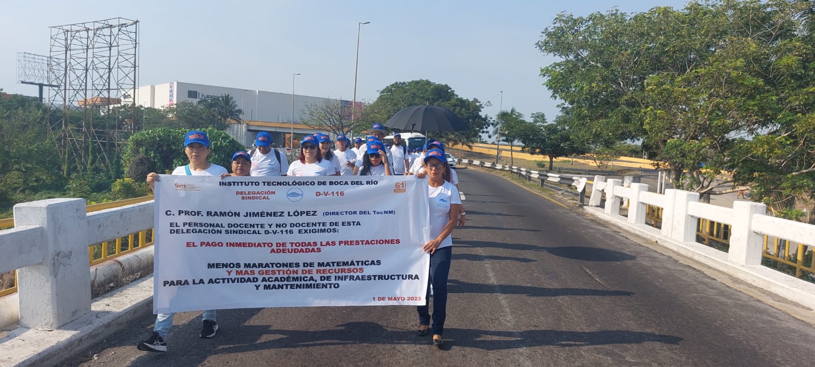 Boca del Río, Ver.- El líder de trabajadores del Instituto Tecnológico de Boca del Río, Ricardo Robert Tejeda, aprovechó el «Día del Trabajo» para protestar contra el Instituto Tecnológico Nacional de México.