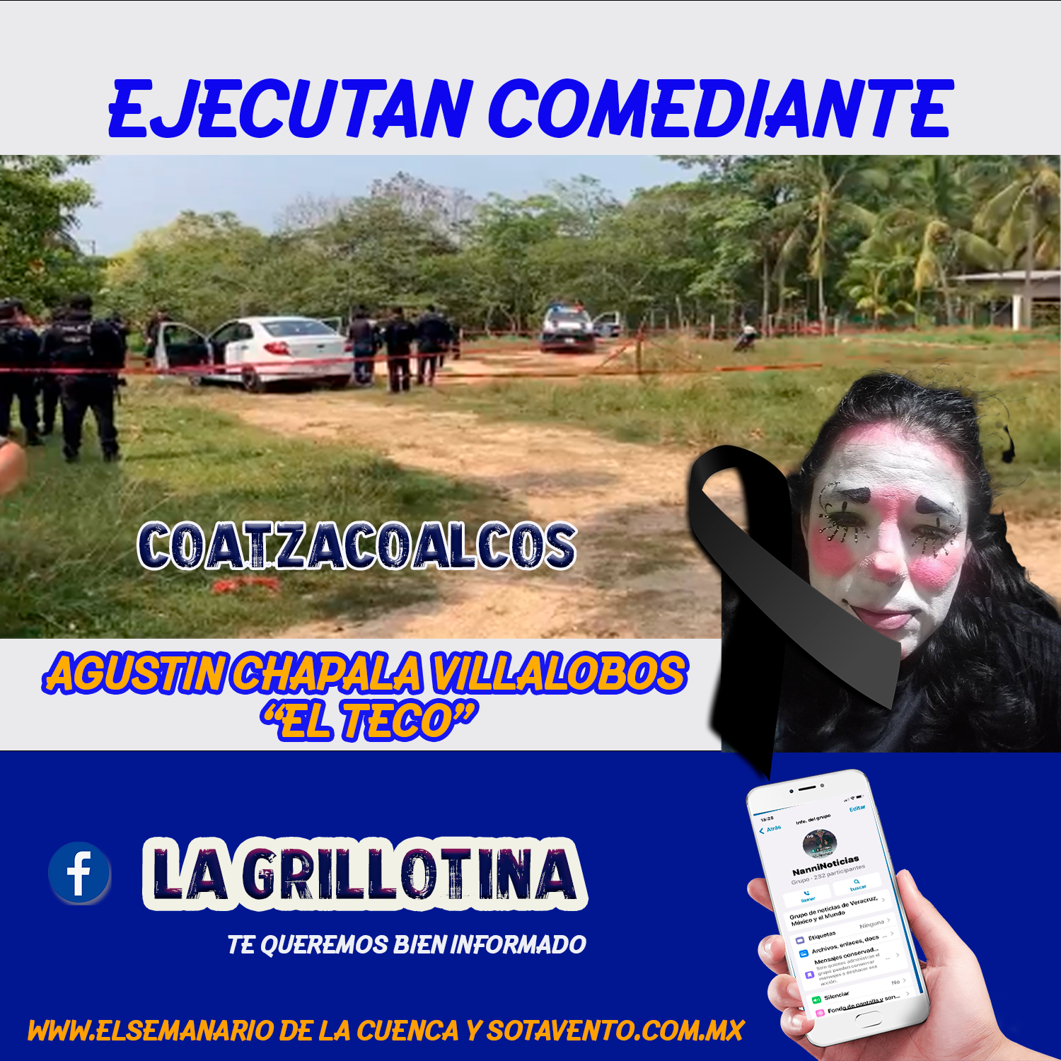 El comediante de la ciudad de Coatzacoalcos Agustín Champala Villalobos, conocido en el mundo artístico como “El Teco”, fue asesinado a balazos en Las Choapas, esto, tras ser citado para un evento infantil, pero en realidad se trató de una emboscada.
