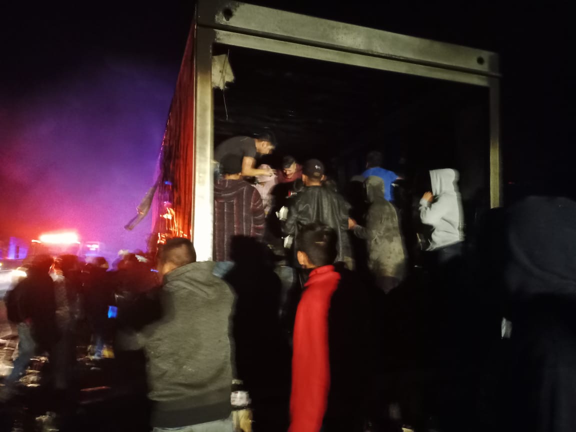 Rápidamente al sitio llegaron decenas de rapiñeros, quienes a pesar de que el camión ardía en llamas, lo vaciaron completamente para llevarse la mercancía sin que ninguna autoridad se los impidiera.
