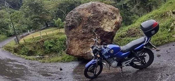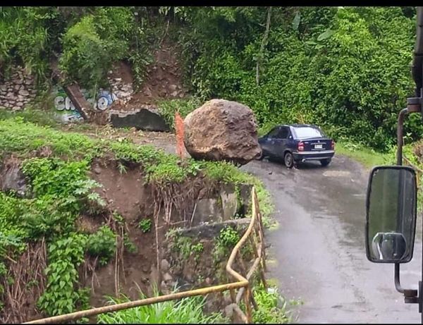 Una roca de gran dimensión se desgajó del cerro que se localiza y entre las comunidades de Sábana Larga y Tecama Calería, y estuvo a punto de caer a la carretera local. La alerta por la situación fue realizada por pobladores quienes pidieron el auxilio de Protección Civil y otros grupos de emergencia para retirar la roca y evitar una posible desgracia. En la gráfica de un aficionado, se ve el tamaño de la roca comparada con el de su motocicleta.