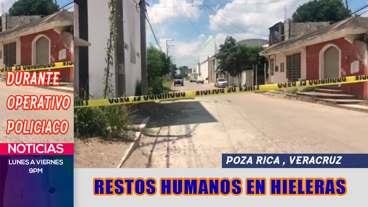 Fuerzas de seguridad federales y estatales realizan un operativo en el municipio de #PozaRica por la localización de supuestos restos humanos dentro de varias hieleras.