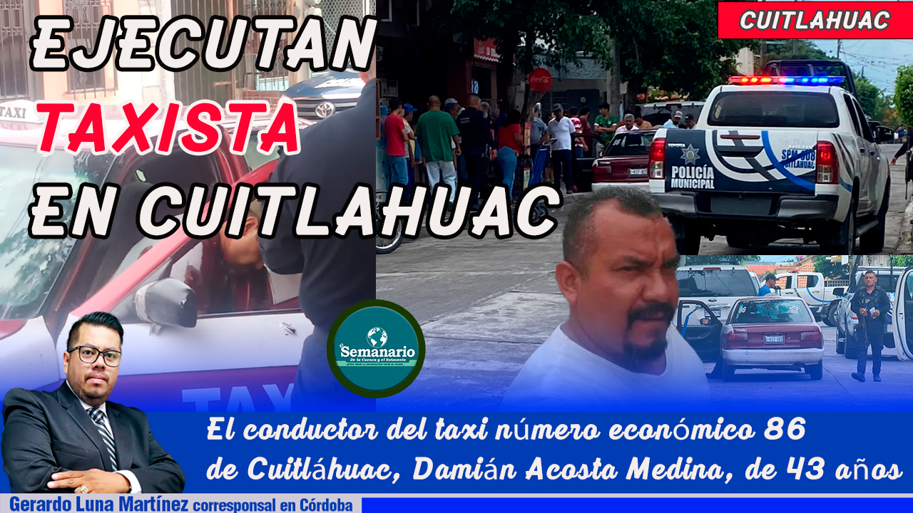 El conductor del taxi número económico 86 de Cuitláhuac, Damián Acosta Medina, de 43 años con domicilio en la comunidad de Tamarindo fue ejecutado a balazos por civiles armados que lo interceptaron en la avenida 1 entre las calles 7 y 9 de la colonia Centro.