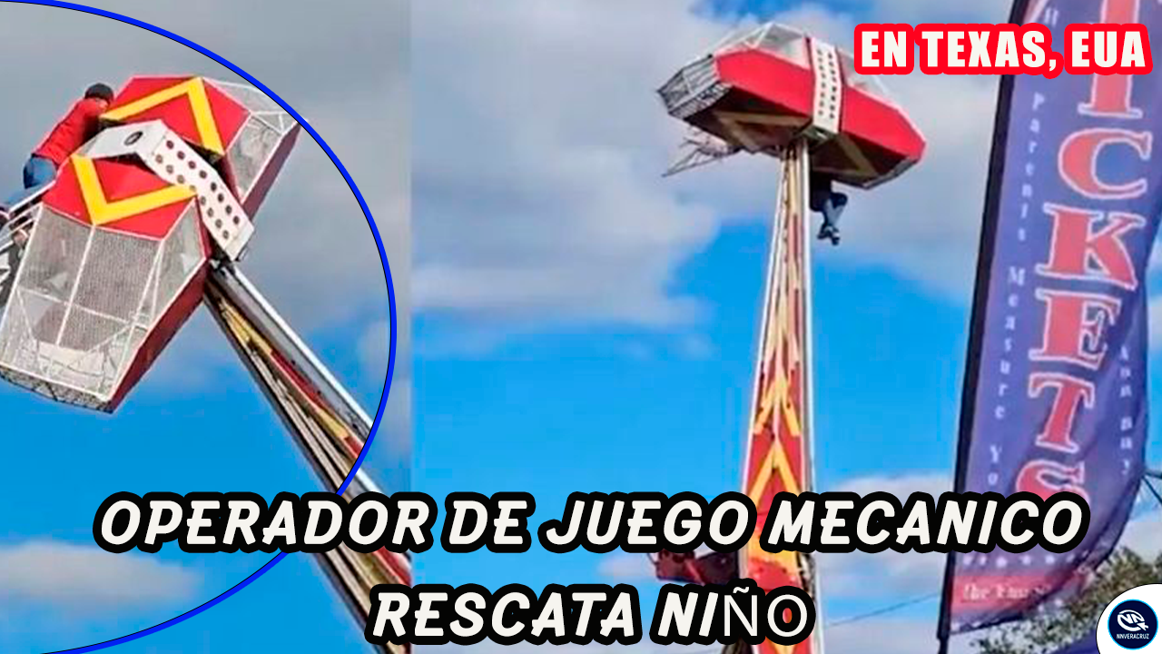 Operador de juego mecánico queda colgando de manera accidental a metros de altura. Niños y adultos vivieron momentos de terror al presenciar a un hombre que quedó colgando a varios metros de altura de un juego mecánico en un parque de diversiones de Texas, Estados Unidos.