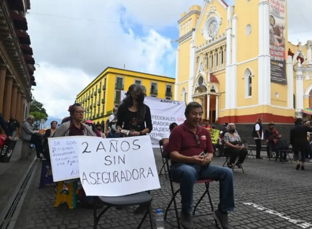 Los sexagenarios llegaron al centro a las 10:30 horas de este jueves con lonas y pancartas que reclaman al Mandatario Estatal Cuitl谩huac Garc铆a Jim茅nez el pago de los Seguros Institucionales.