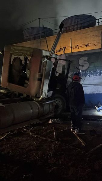 Los hechos se registraron alrededor de las 4:30 de la mañana, debido al impacto la unidad quedó atravesada a la altura del carril de subida de los camiones cañeros que salen de la factoría, después de entregar la materia prima.