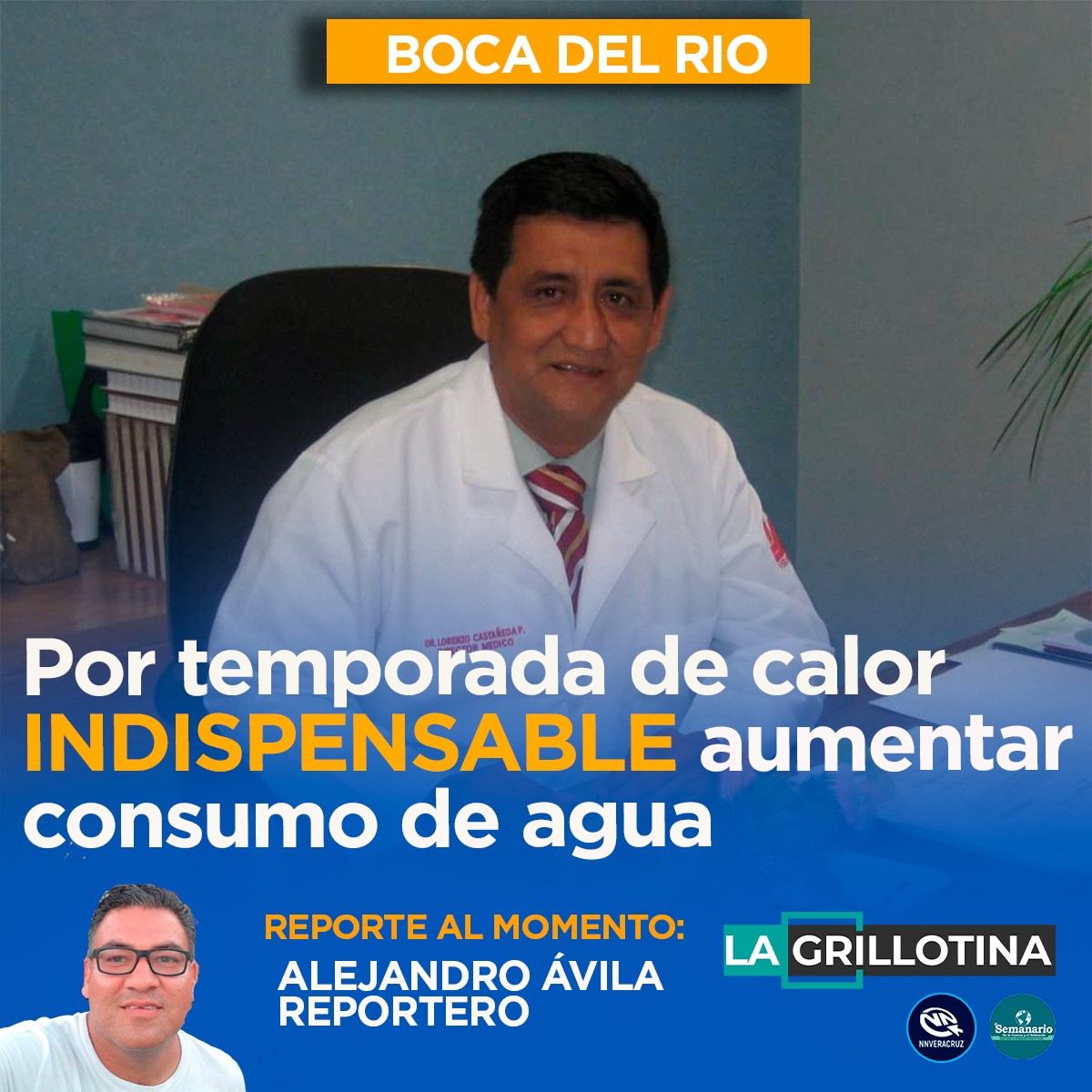 Boca del Río, Ver.- Debido a la temporada de calor es indispensable aumentar el consumo de agua para evitar deshidrataciones y descompensaciones, mencionó el médico y ex director de la Jurisdicción Sanitaria número 8, Lorenzo Castañeda Pacheco.