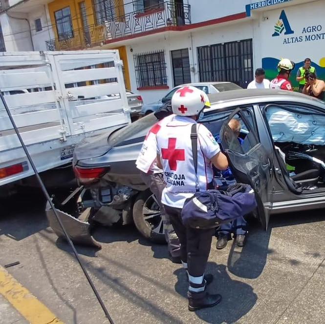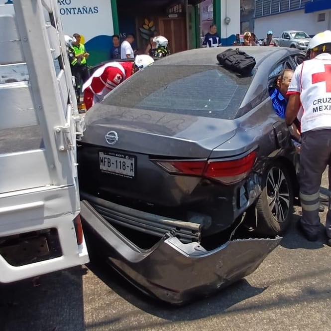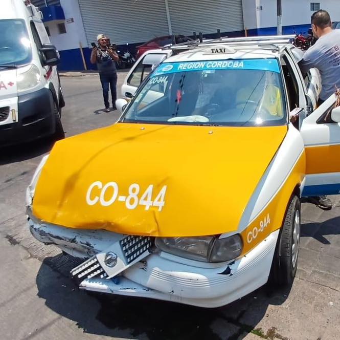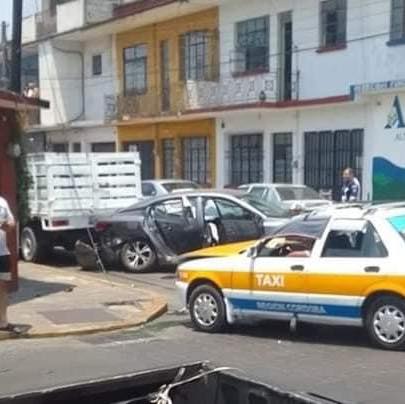 Córdoba, Ver.- Una persona lesionada y daños materiales de consideración arrojó como saldo un choque múltiple entre un taxi, un automóvil Nissan-Versa y una camioneta Frontier de redilas en la avenida 3 y calle 23 de la colonia Centro.