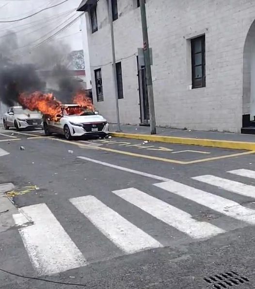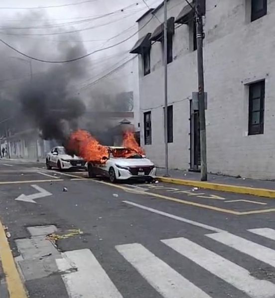 DESTROZOS Y QUEMA DE AUTOS EN IXTACZOQUITLAN POR HABITANTES DESALOJADOS DEL PALACIO MUNICIPAL