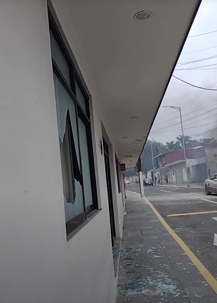 Ixtaczoquitlan ver.,:-22 de mayo del 2024.- Manifestantes enardecidos contra el alcalde Nahum Álvarez Pellico rompieron vidrios de diferentes oficinas del ayuntamiento así como le prendieron fuego a un automóvil que pertenece al ayuntamiento.