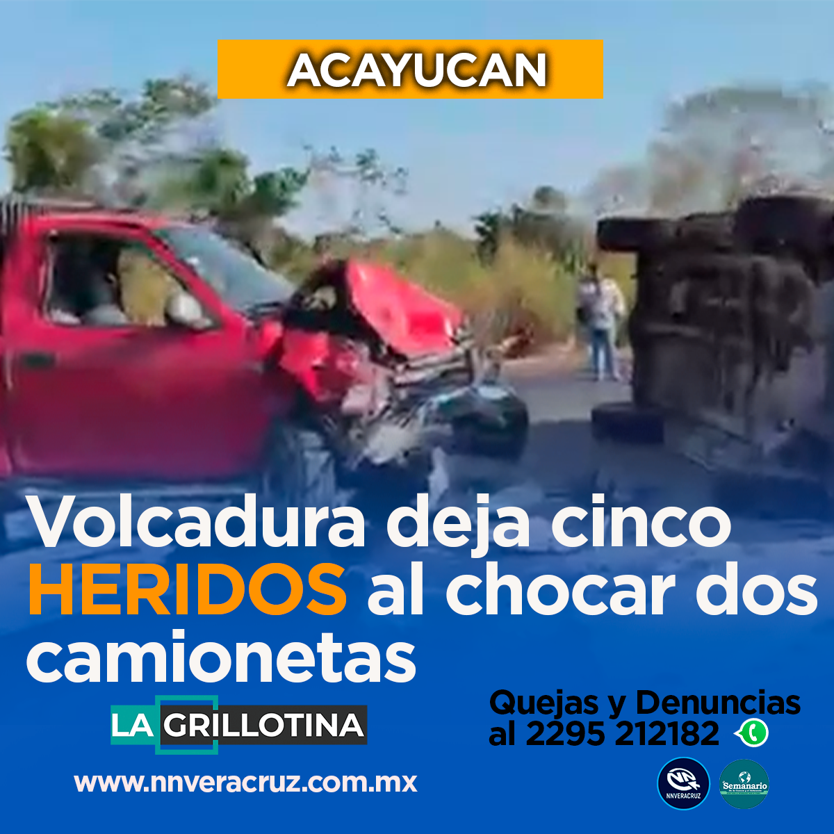 CINCO LESIONADOS AL CHOCAR Y VOLCAR DOS CAMIONETAS