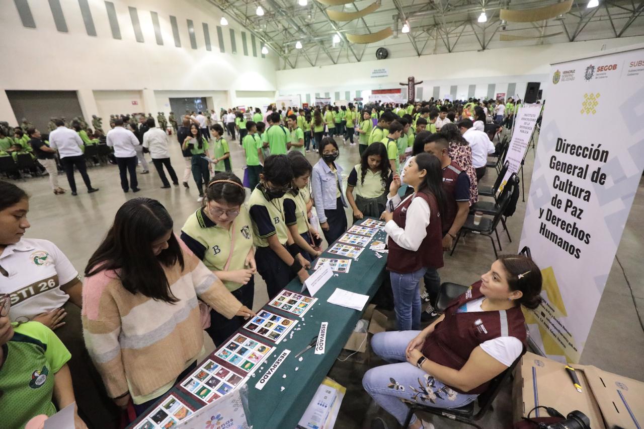 Boca del Río, Ver., 11 de junio de 2024.- Más de 20 dependencias federales y estatales instalaron en el World Trade Center la Feria de Paz y Desarme Voluntario, estrategia que busca promover entre la población valores, actitudes y comportamientos que inhiban cualquier manifestación de violencia y adicciones en los entornos familiar, escolar y social.