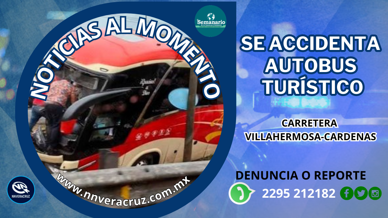 Un autobús de turismo de la línea Tour Acosta, se accidentó la mañana de este miércoles sobre la carretera Villahermosa – Cárdenas en el estado mexicano de tabasco.