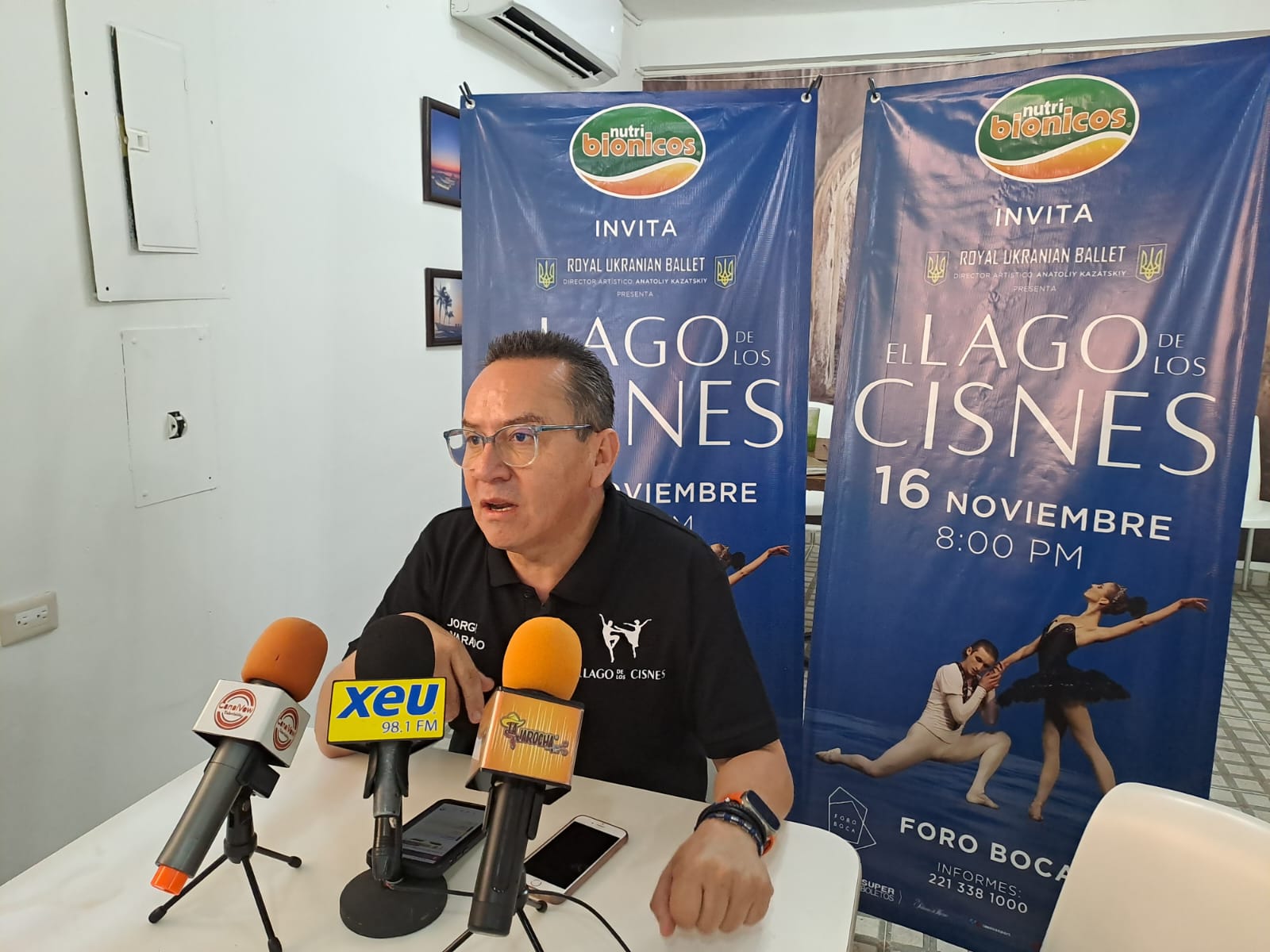 El empresario ofreció rueda de prensa a la mañana de este jueves para informar que, el próximo sábado 16 de noviembre se presentará el ballet ucraniano con la puesta en escena del «Lago de los Cisnes» en el Foro Boca; mientras que el domingo 17 de noviembre lo hará, en dos funciones en el Teatro del Estado en la ciudad de Xalapa.