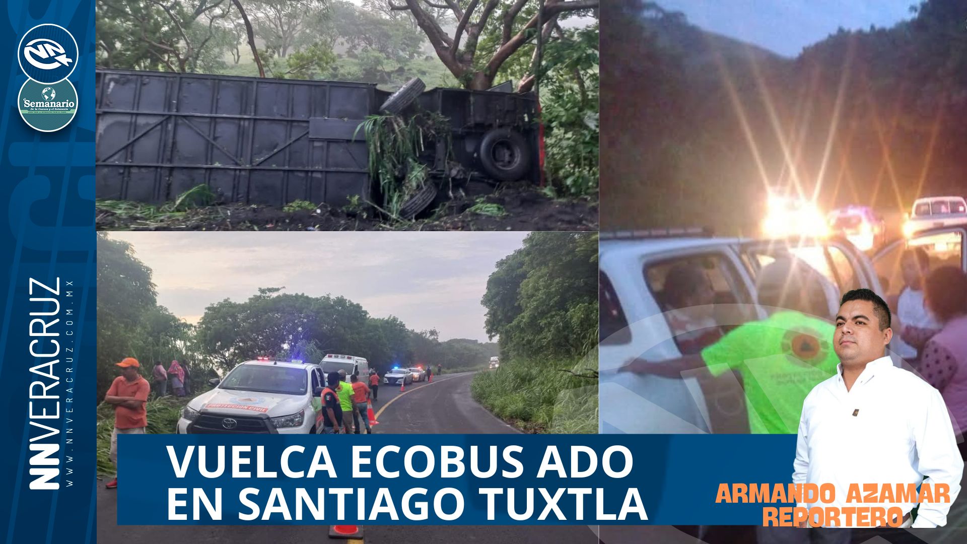 VUELCA UN AUTOBÚS ADO SOBRE LA CARRETERA 180 EN SANTIAGO TUXTLA