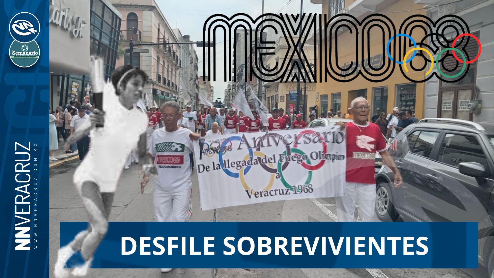 SOBREVIVIENTES DE LA LLEGADA DE LA ANTORCHA OLIMPICA DEL 68 DESFILAN POR CALLES DE VERACRUZ