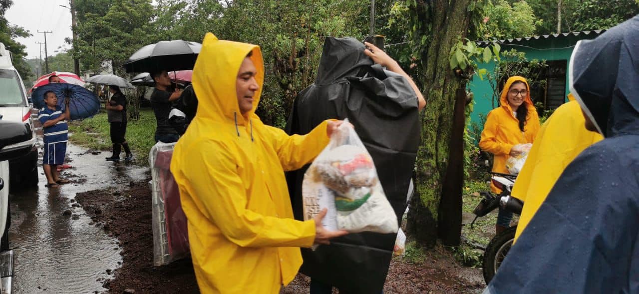 presidente municipal Julio César García Machucho, entregaron paquetes alimentarios y enseres como colchonetas y cobertores a las familias afectadas.