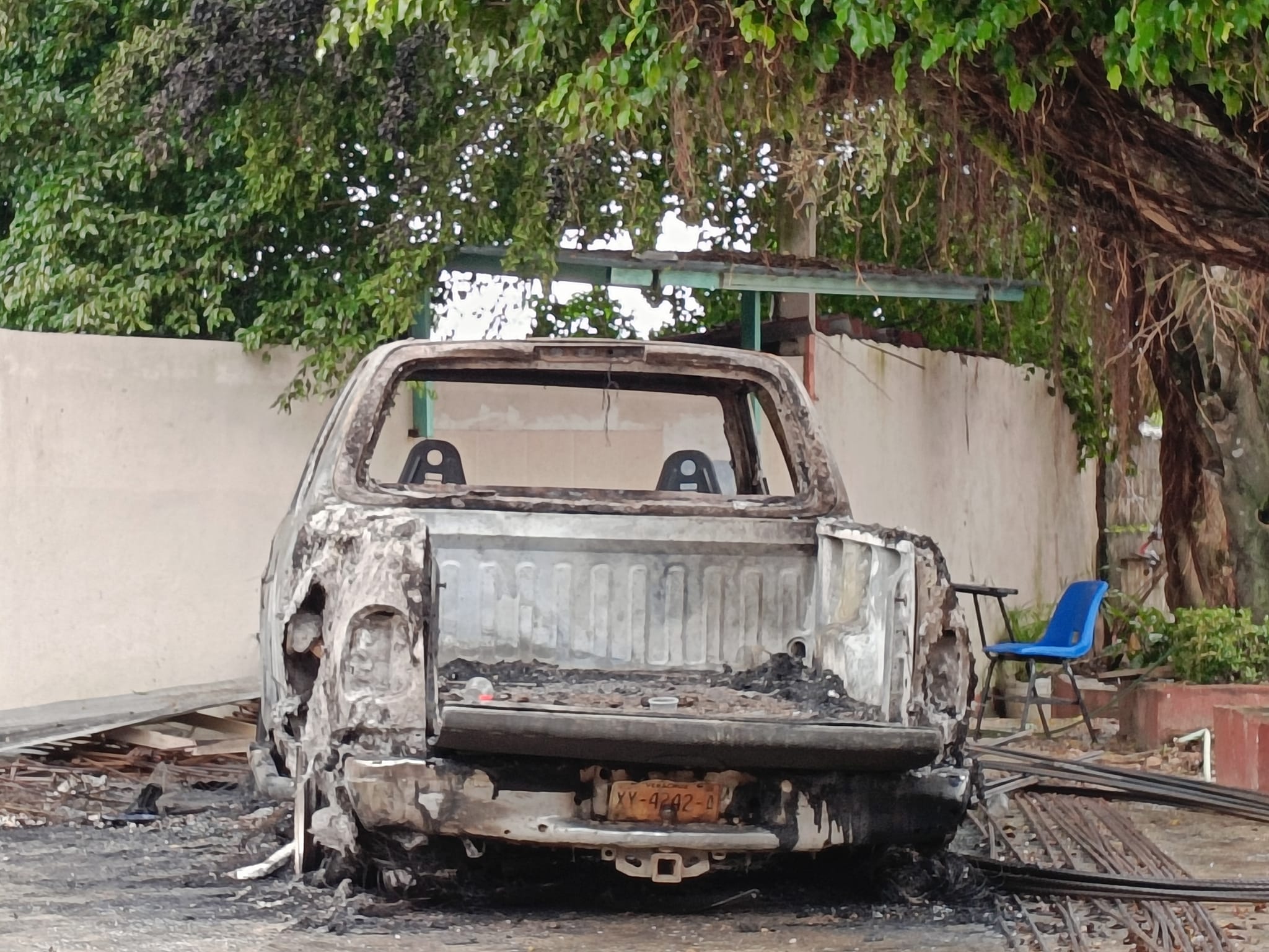 Una camioneta Ford150, color roja, fue consumida por el fuego en el interior de una escuela primaria de la colonia Reforma del municipio de Las Choapas.