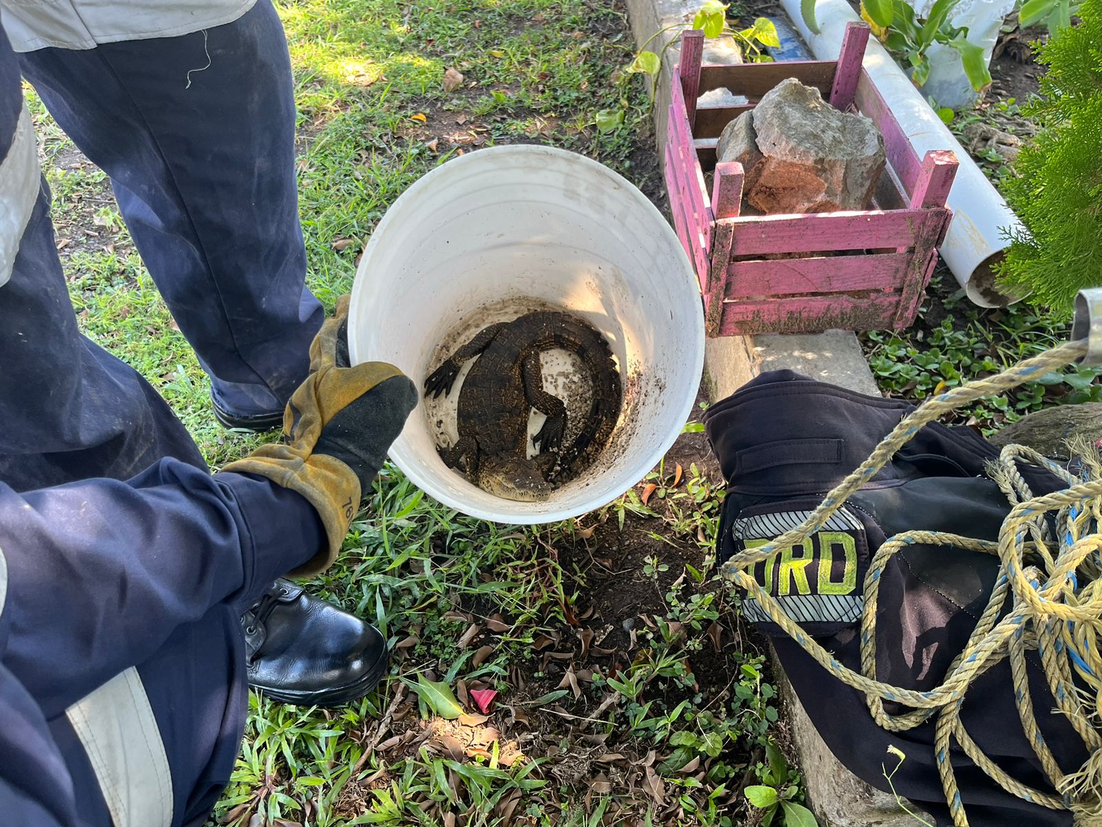 Luego de asegurarlo en una jaula transportadora, los bomberos lo retiraron a las instalaciones del Parque Viveros donde un médico veterinario determinará su género, edad y especie exacta para su posterior reubicación en un área adecuada.