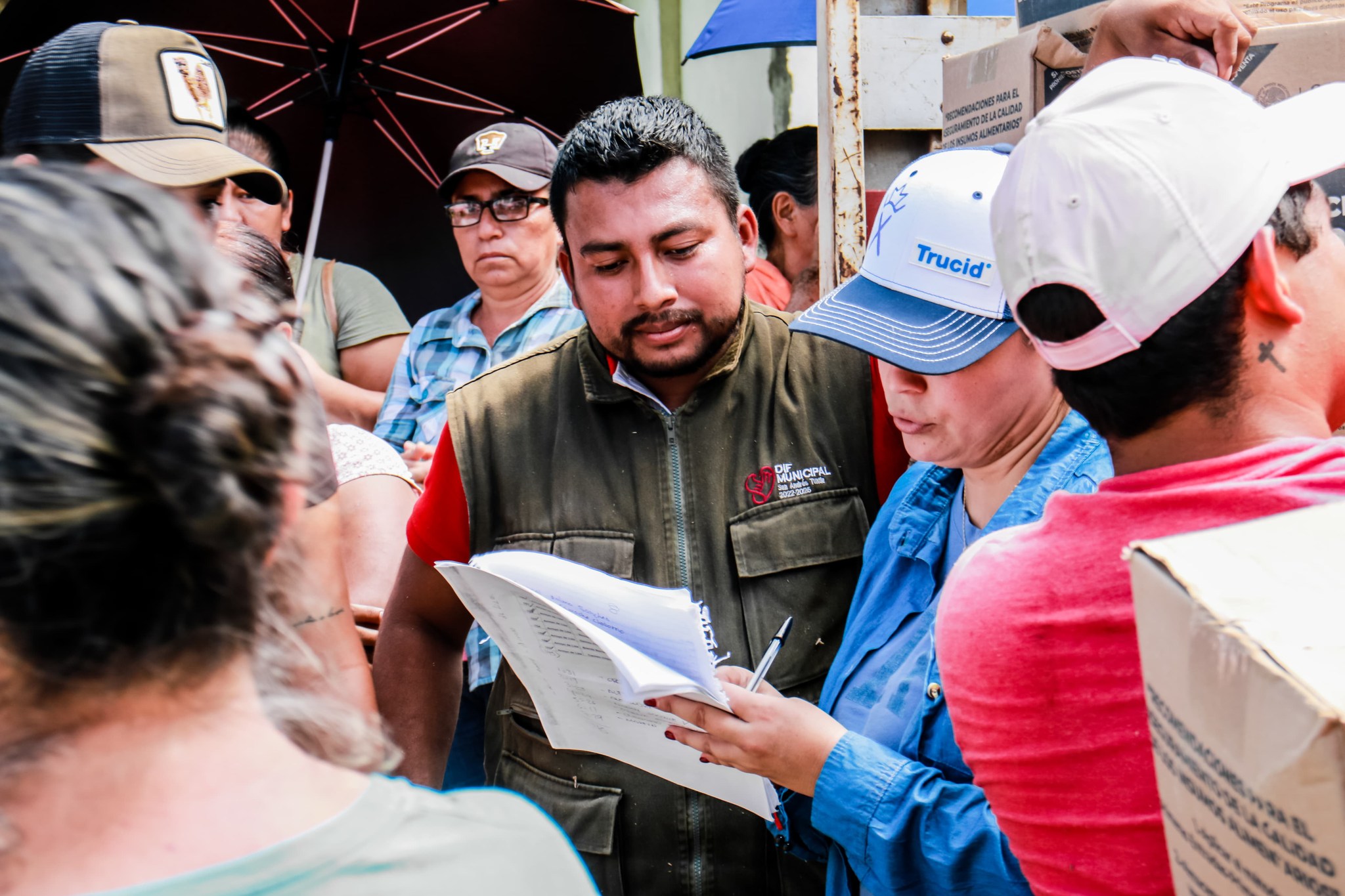 En representación de la alcaldesa María Elena Solana Calzada y del Presidente del DIF Municipal, Felipe Rubio Solana, los encargados de vincular a la población afectada y coordinar la entrega de paquetes alimentarios fueron la Regidora Sexta Ximena Tress Fadanelli y el encargado de Atención a Población Vulnerable del DIF Municipal, Hermes Daniel Ortiz Boassi.