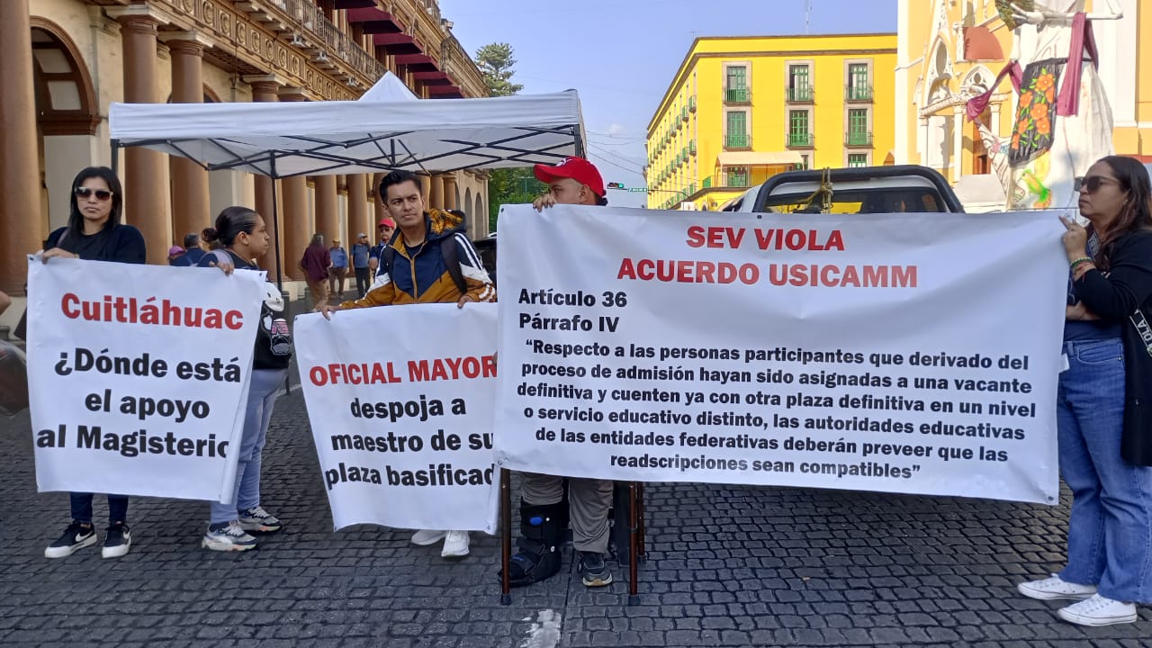 Explicó el profesor de educación especial, Octavio Pérez, «Lo que yo quiero que me regresen mi plaza de primaria en la escuela Francisco I Madero, de la colonia culturas mexicanas en la ciudad de Xalapa, «que yo me gane con mi esfuerzo, con trabajo», en el año 2023-2024″ con lonas expresando su inconformidad, «se violan acuerdos en Usicamm».
