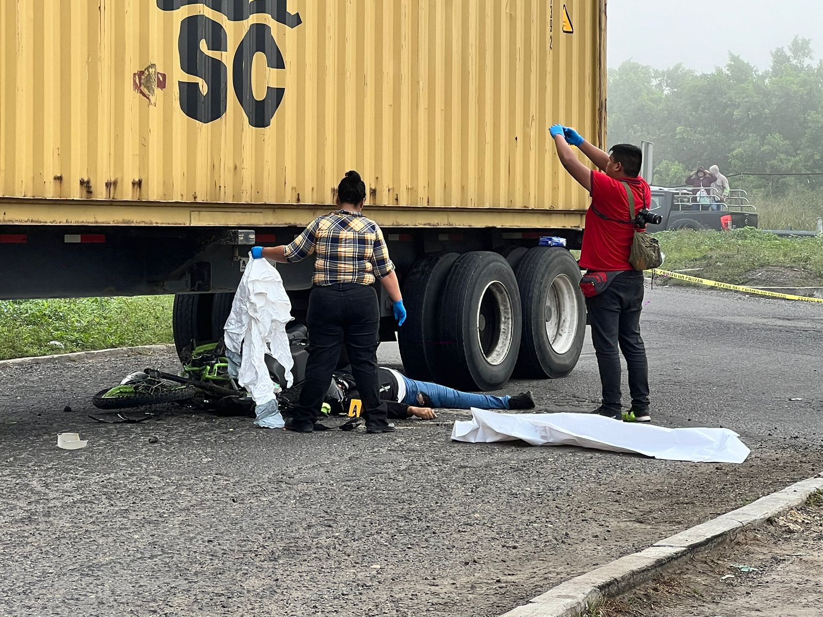 Agentes de la Guardia Nacional, división carreteras, tras tomar conocimiento del fatal accidente, procedieron con el acordonamiento del lugar para qué la Fiscalía General del Estado a través de la Policía Ministerial realizará las diligencias correspondientes.
