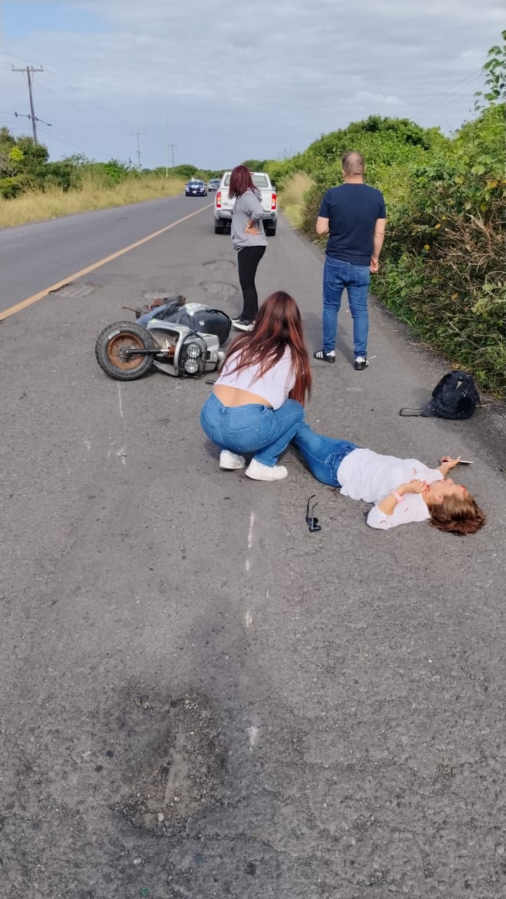La joven fue identificada como Esther Sosa Román de 38 años de edad, quién viajaba en su motocicleta sobre la carretera federal 180 a la altura de la localidad de Buen País, cuando sufrió un accidente que le dejó severas lesiones.