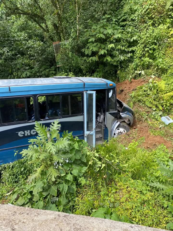 Un autobús de la Línea Excelsior que iba circulando en la carretera a Xico Viejo , en el lugar denominado La Liberata, se salió del camino y se impactó.
