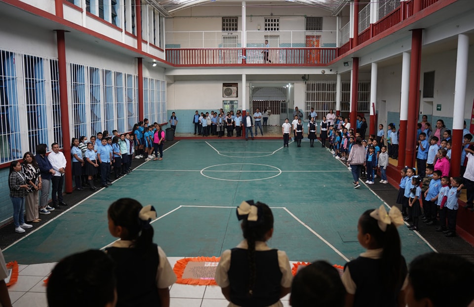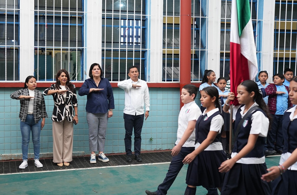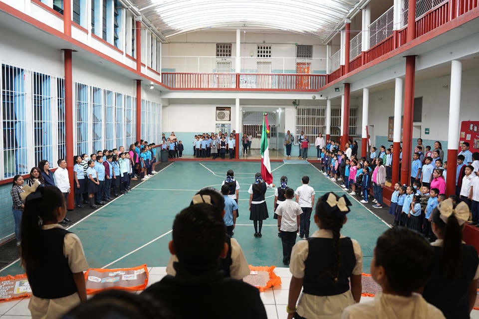 Tras el arribo de la escolta para rendir honores a la bandera, las autoridades, docentes, alumnos y padres de familia reunidos ahí, se dispusieron a entonar la letra de nuestro glorioso himno nacional y posteriormente, tras despedir a nuestro lábaro patrio, los presentes entonaron el himno a Veracruz.