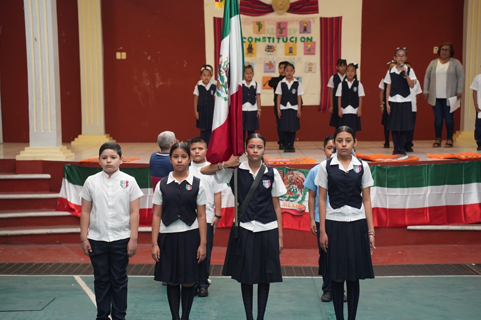 Asiste alcaldesa de San Andrés Tuxtla al acto cívico por el 108 aniversario de la promulgación de la Constitución Mexicana en la Escuela Primaria Landero y Coss.