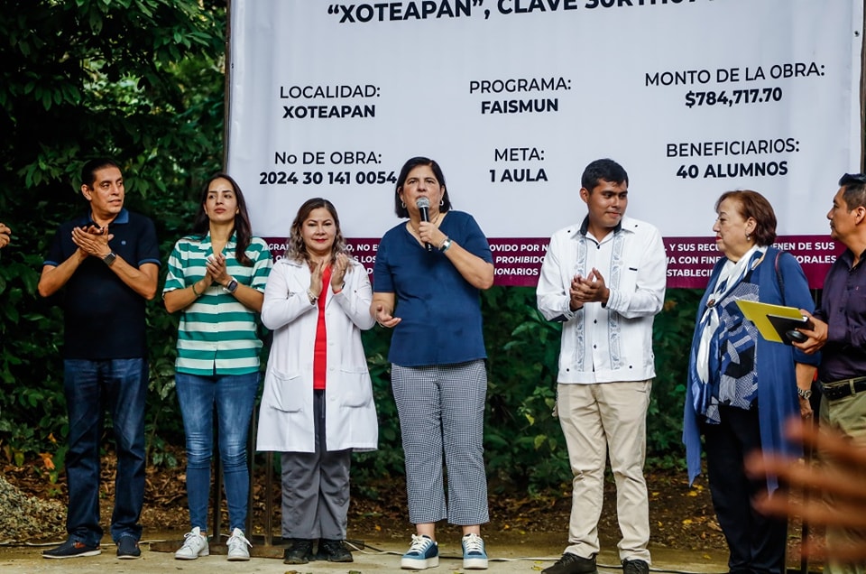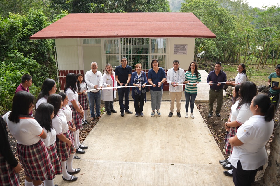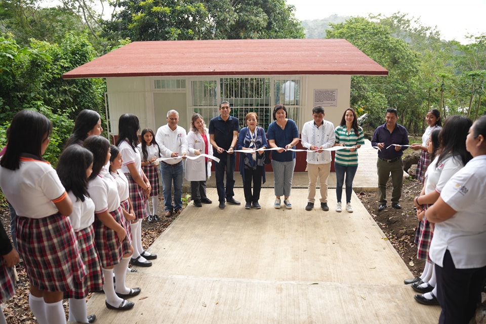 Dra Maria Elena Solana Calzada – Dra Remedios, acudió a inaugurar la obra de construcción de un aula para los alumnos del lTelebachillerato de Xoteapan, con la cual beneficia a toda la población estudiantil de este plantel dotándolos con un nuevo espacio educativo de calidad.