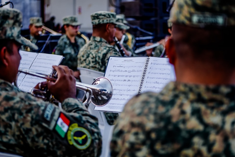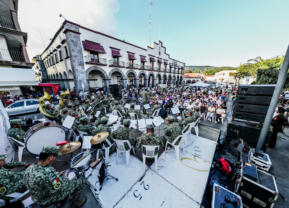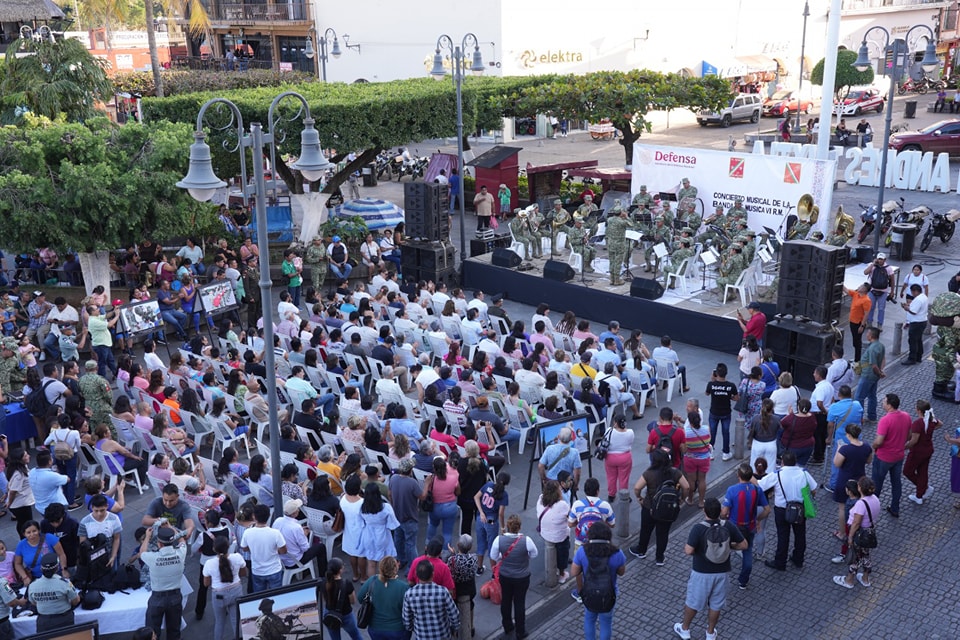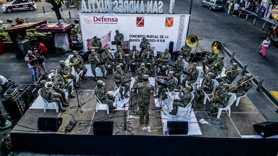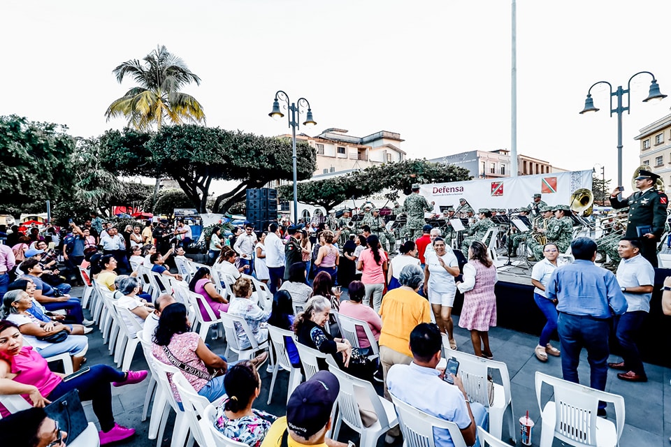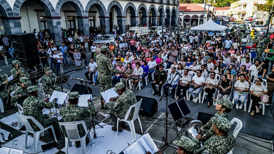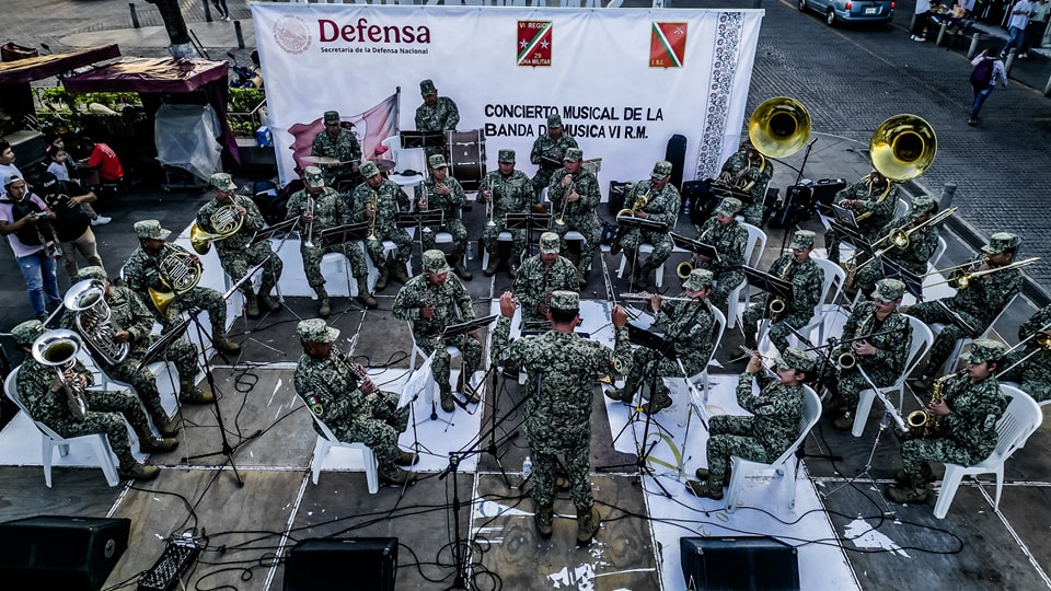 Este concierto forma parte de la gira que la Banda de Música de la Sexta Región Militar con sede en Puebla, realizan por la zona sur de Veracruz, deleitando a la concurrencia con una tarde llena de música, canto y baile, al ritmo de las canciones interpretadas por la orquesta.