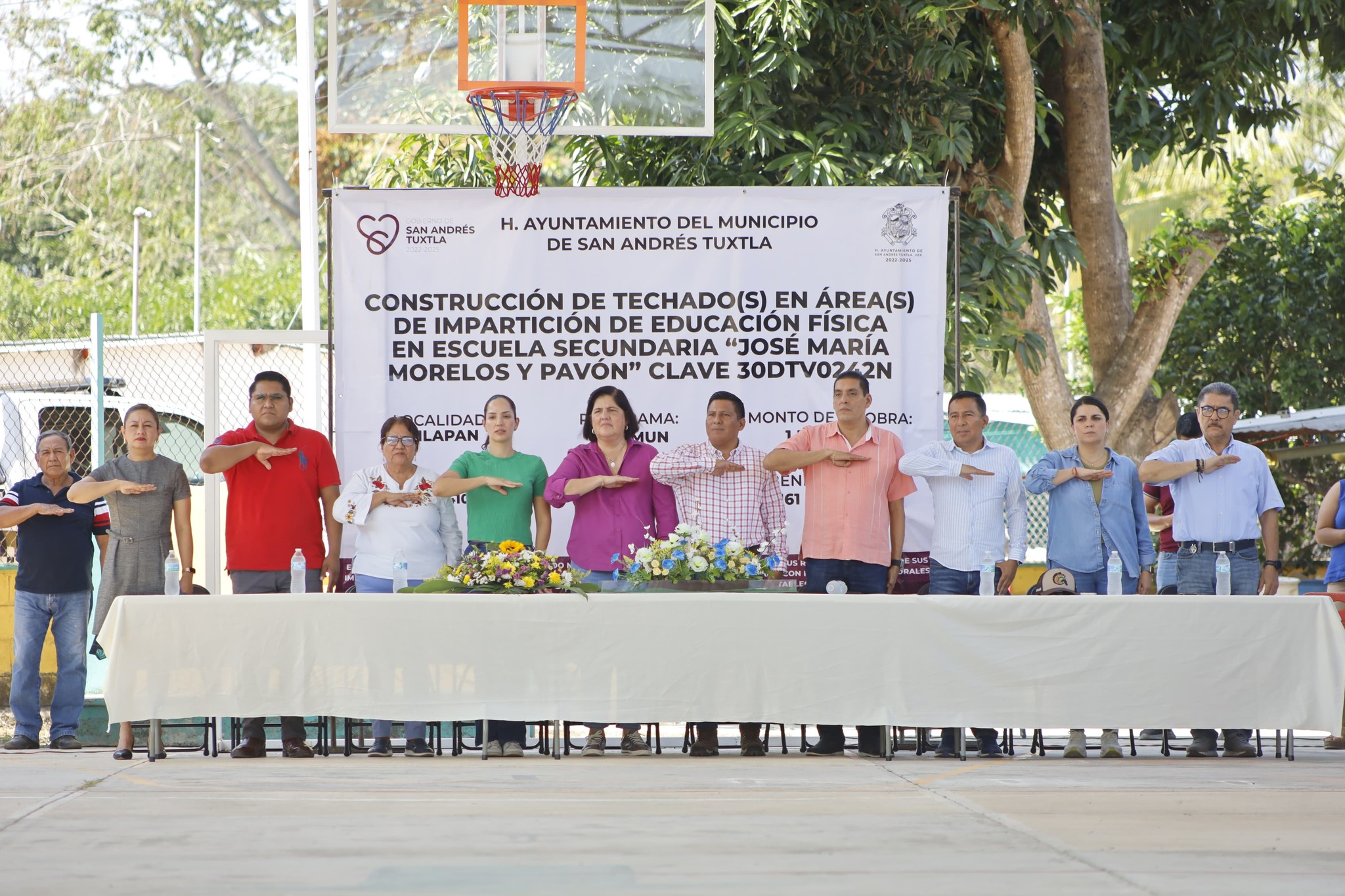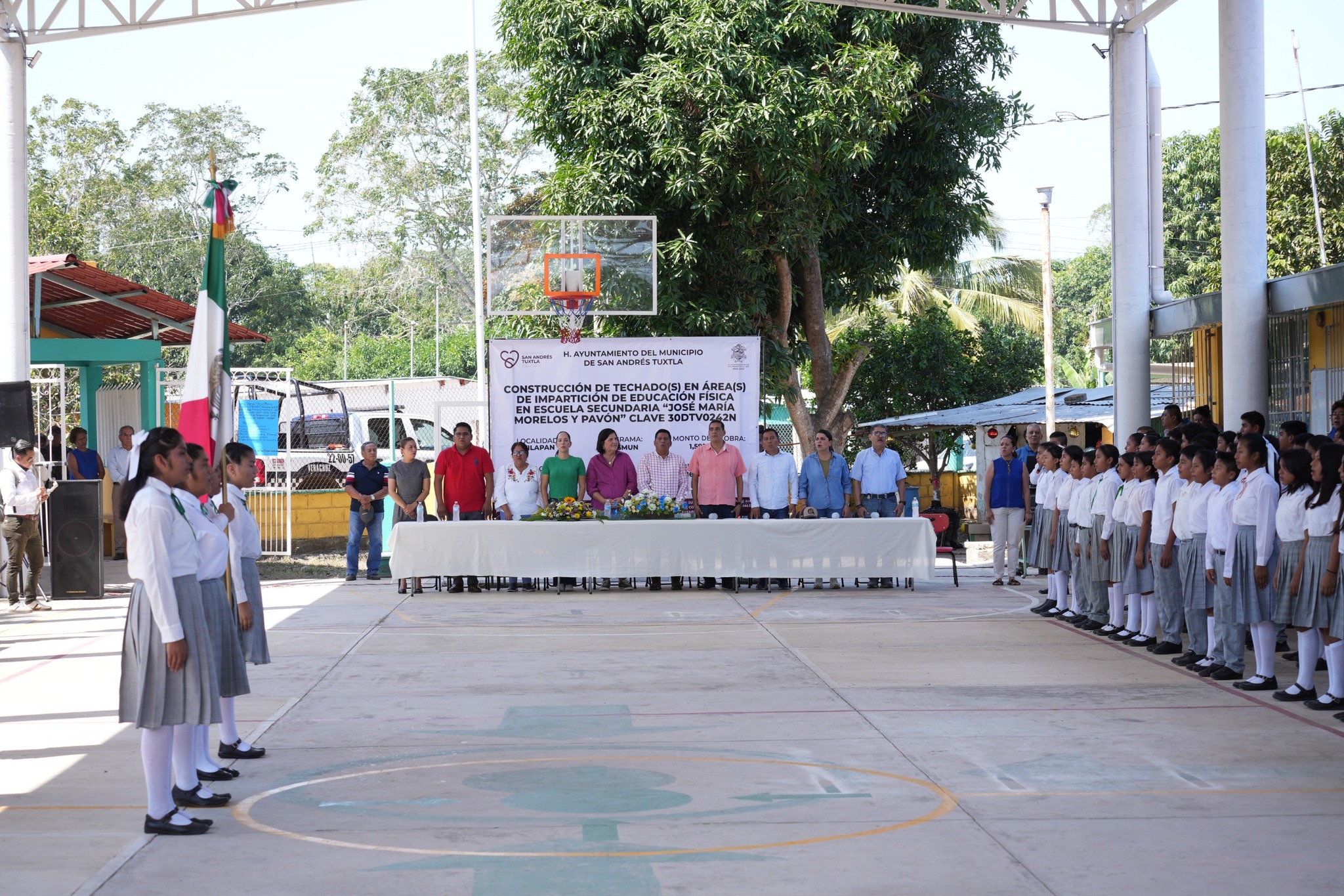 Autoridades municipales inauguran domo en Telesecundaria José María Morelos y Pavón en Tilapan.