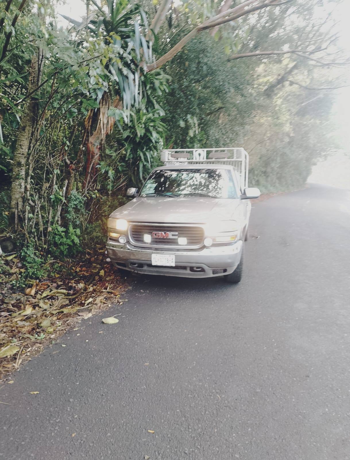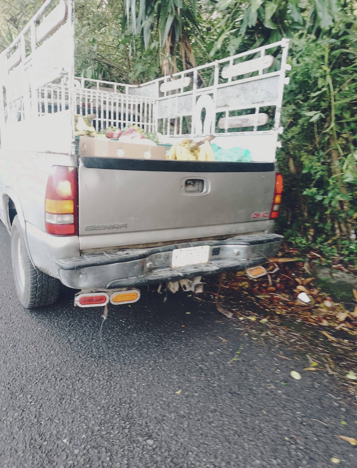 Hace unos minutos, el conductor de esta camioneta fue sorprendido tirando comida podrida en la carretera y al reclamarle se puso amenazar a las personas.