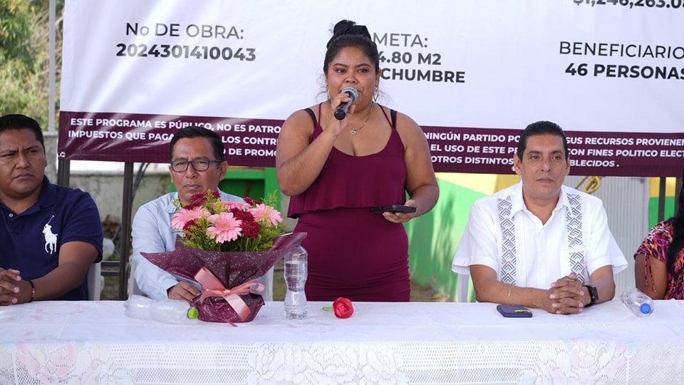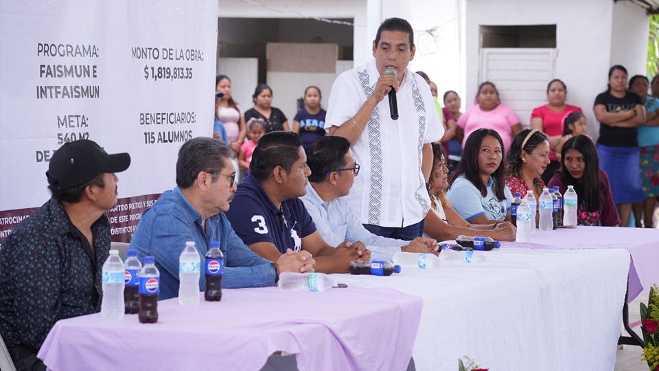 Para dar por inaugurada esta obra, en representación de la alcaldesa acudieron los regidores Iván de Jesús Bautista Tom, Edgar Leoncio Antemate Caixba, Abelardo Javier Ortiz Navarrete y Edgardo Cecilio Ramírez Sosa, siendo este último el encargado de llevar el mensaje de la doctora María Elena Solana Calzada, ante los maestros, padres de familia y alumnos beneficiados.