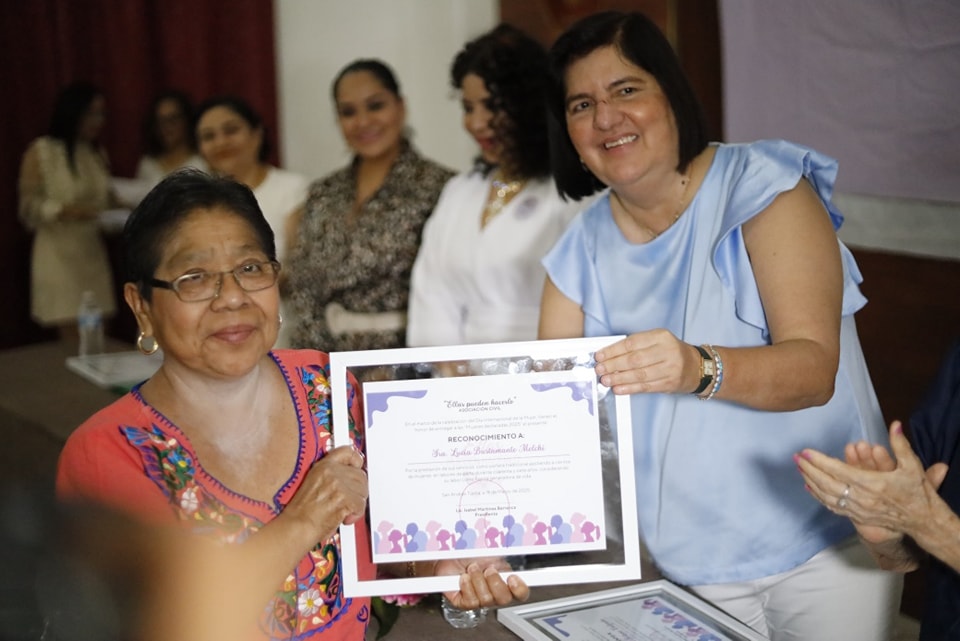 Al respecto, la maestra María Elisa Vera Cancino, una de las mujeres que recibió reconocimiento por su trayectoria docente, también destacó los beneficios de contar hoy con una asociación civil como “Ellas Pueden Hacerlo”, que pondera a las féminas y defiende sus derechos en todos los ámbitos. En este sentido la profesora María Elisa Vera Cancino, también fue reconocida por su entrega y compromiso con la educación en Santiago Tuxtla, donde además es una destacada líder de opinión en el ámbito político social y cultural.