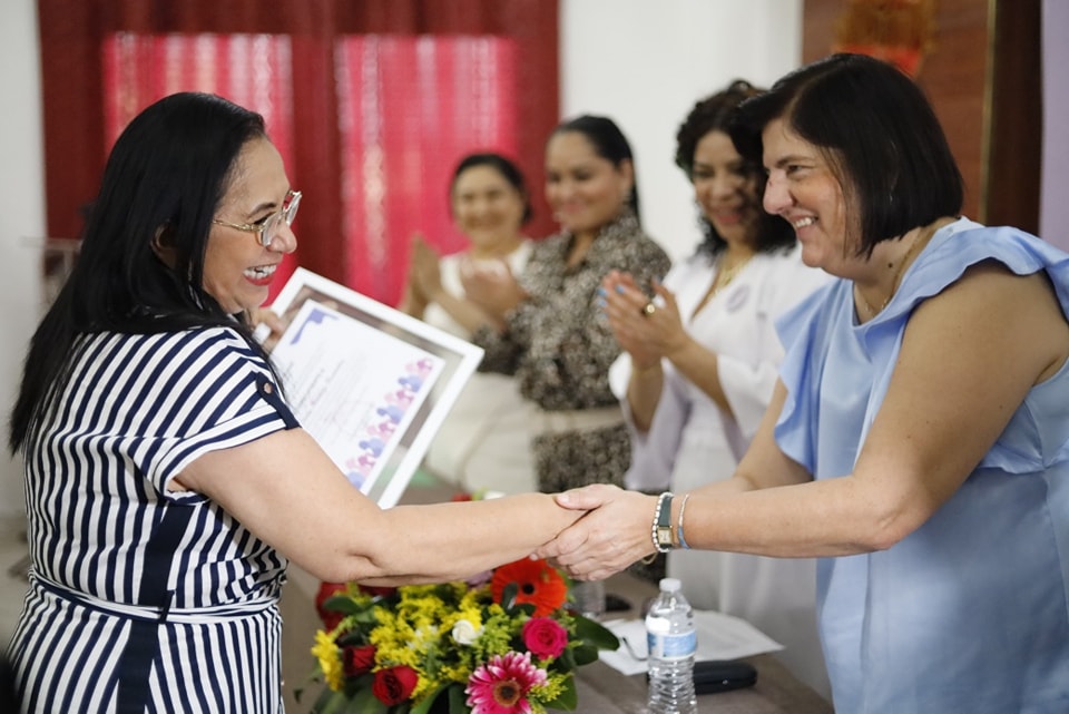 La doctora María Elena Solana Calzada hizo la entrega del reconocimiento que la Asociación Civil hizo de manera honorífica a su presidenta, la licenciada Isabel Martínez Barranca, por su destacada trayectoria como servidora pública en el Poder Judicial del estado de Veracruz, así como por su capacidad y visión de liderazgo, con el que impulsa el cambio y la resiliencia en las mujeres de Los Tuxtlas.