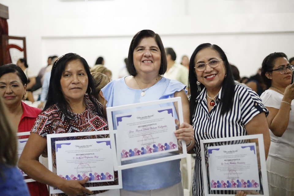 Con una sala completamente llena, la licenciada Isabel Martínez Barranca, junto con las alcaldesas de San Andrés Tuxtla, María Elena Solana Calzada, y de Santiago Tuxtla, Brianda Kristel Hernández Topete, procedieron a realizar la entrega de reconocimientos a destacadas mujeres de la región de los Tuxtlas entre las que destacaron, además de las ya mencionadas, la maestra Miriam Herrera Fragoso quien actualmente es Jueza de Primera Instancia en Materia familiar del Distrito Judicial de Xalapa, Veracruz; así la también, la licenciada Juana María Cárdenas Constantino, Notario Público Número 6 de la Decimonovena Zona Registral; la licenciada Rebeca de la Maza Lara, Notario Público Número 7 de la Decimonovena Zona Registral; la licenciada en derecho Rosario Guadalupe Vázquez, Abogada Litigante y Catedrática Emérita del Centro de Estudios Superiores de Los Tuxtlas; la licenciada en derecho Teresa Mendoza Hernández, actualmente Oficial Mayor del Registro Civil en el Municipio de San Andrés Tuxtla y Primera Defensora Pública de esta ciudad; la licenciada en derecho Silvia Acua Contreras, primera mujer abogada de la comunidad de El Huidero, perteneciente a San Andrés Tuxtla; la ciudadana Catalina Solís García, Oficial Judicial al servicio del Poder Judicial del Estado, en el Juzgado Segundo de Primera Instancia de San Andrés Tuxtla y la licenciada Olga Lidia Figueroa Chipol, del Tribunal Unitario Agrario del Distrito 40.