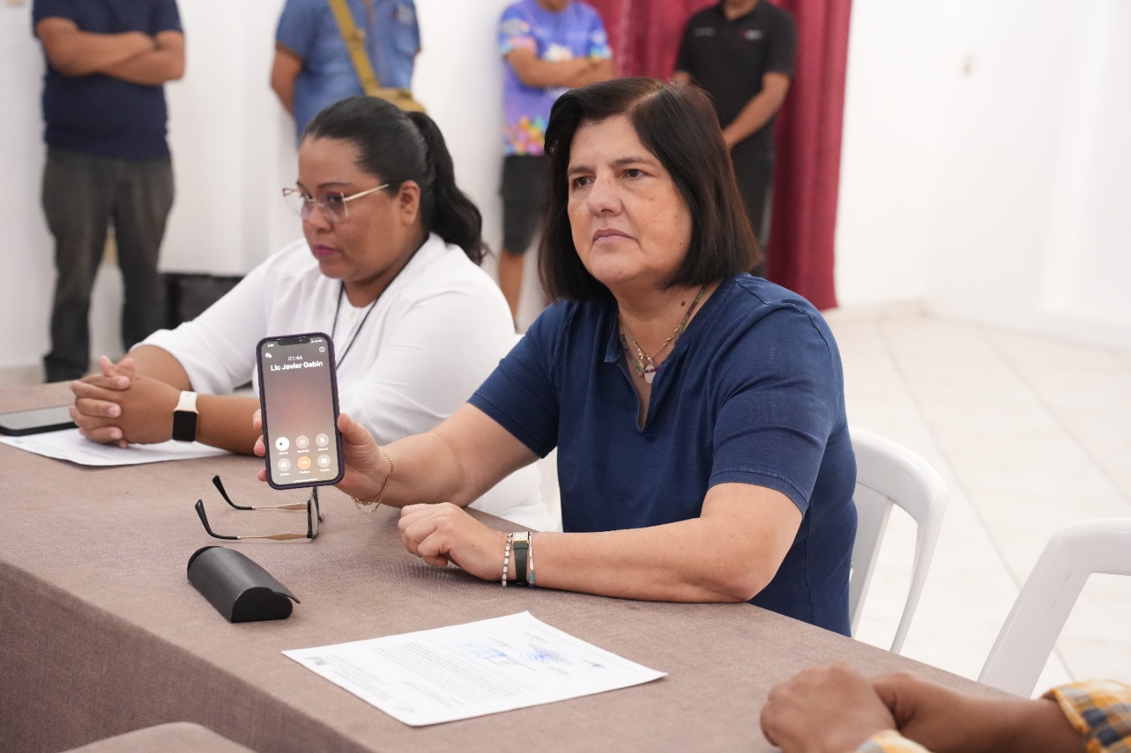 La doctora María Elena Solana Calzada, recibió a la comitiva de la Triple S acompañada del Regidor Cuarto, Edgar Leoncio Antemate Caixba y la Directora de Gobernación Municipal, María de los Ángeles Lizardi Figueroa.