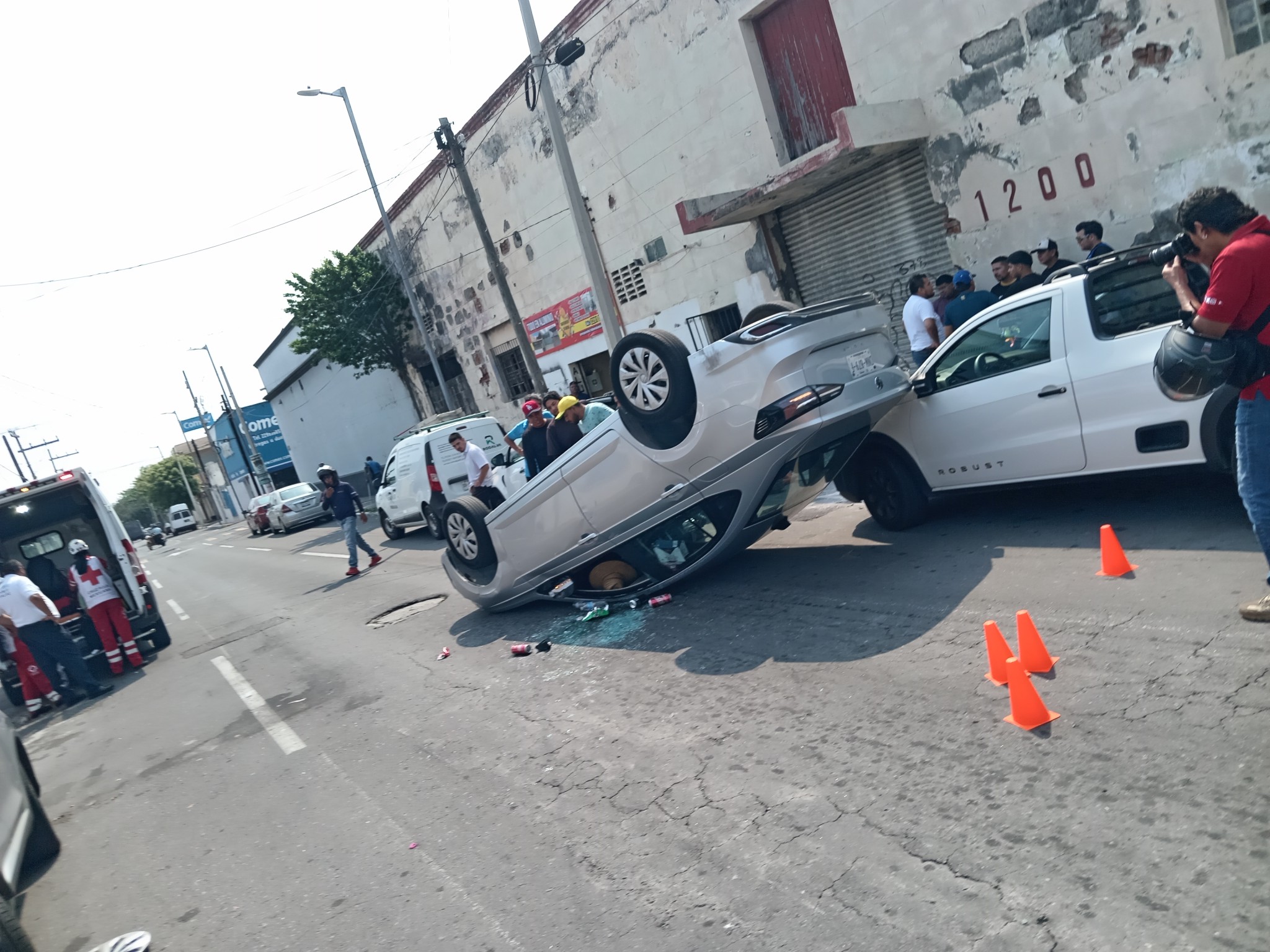 Justo al circular por Mario Molina con dirección hacia el centro, entre Jiménez y Pino Suárez, golpearon el costado derecho trasero de una camioneta MG de color gris que estaba estacionada, lo que provocó que perdieran el control y tras un volantazo, se volcaran quedando con los neumáticos hacia arriba.